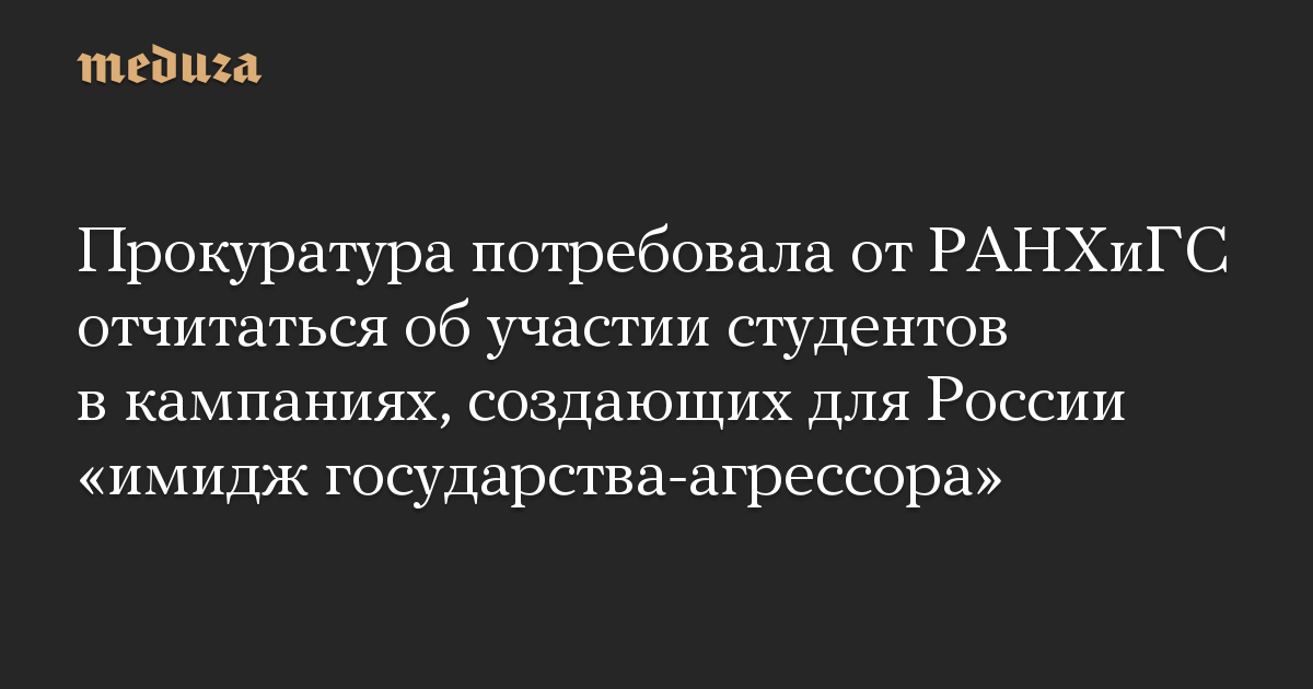 Прокуратура потребовала от РАНХиГС отчитаться об участии студентов в кампаниях, создающих для России «имидж государства-агрессора»
