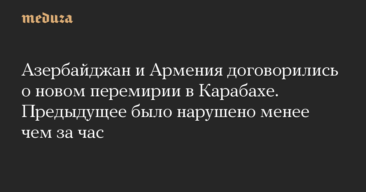 Азербайджан и Армения договорились о новом перемирии в Карабахе. Предыдущее было нарушено менее чем за час