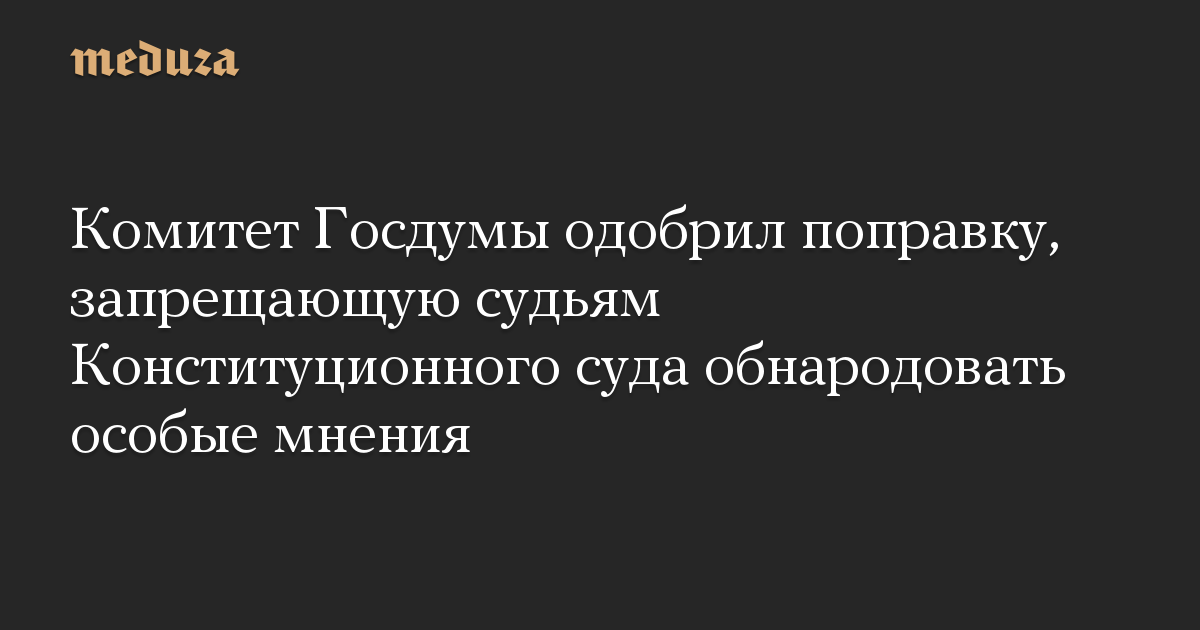 Комитет Госдумы по законодательству рекомендовал к принятию поправку, которая запретит судьям Конституционного суда (КС) обнародовать свои особые мнения или публично на него ссылаться. На это обратил внимание партнер юридической фирмы «Пепеляев Групп» Роман Бевзенко, сообщила «Медиазона».