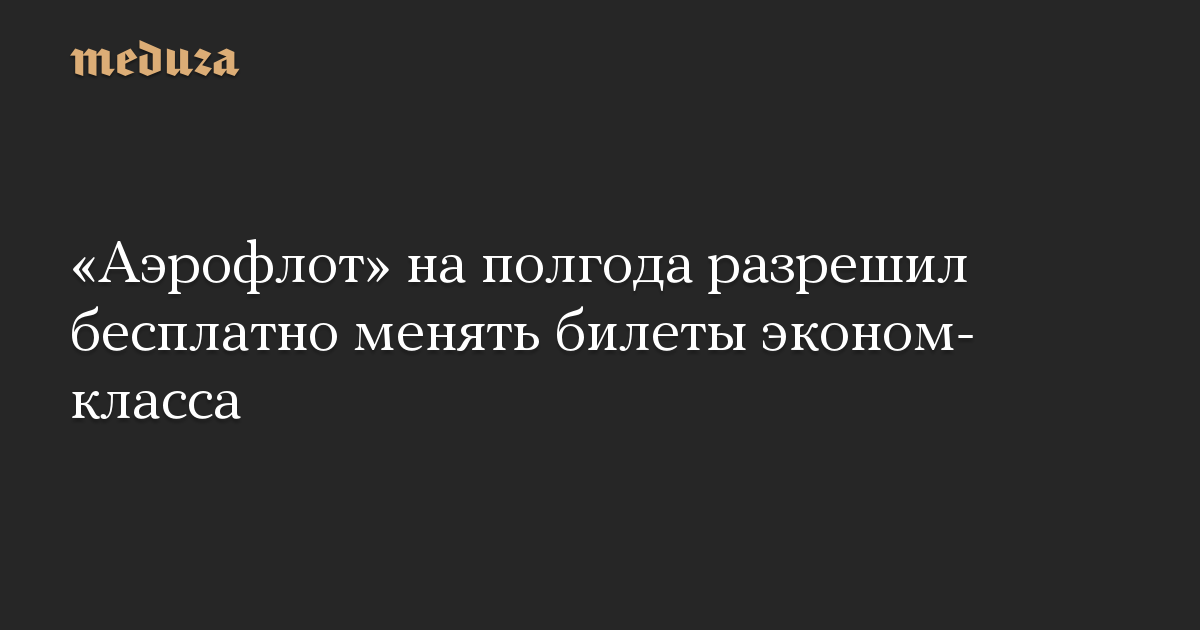 Поправка. Первоначально в новости сообщалось, что бесплатно переоформить билет можно до вылета, а также не позднее, чем через 30 минут после него. Именно так было сказано в пресс-релизе «Аэрофлота». Однако вскоре компания изменила текст пресс-релиза. Представитель «Аэрофлота» сказал РБК, что в первоначальном тексте была ошибка.