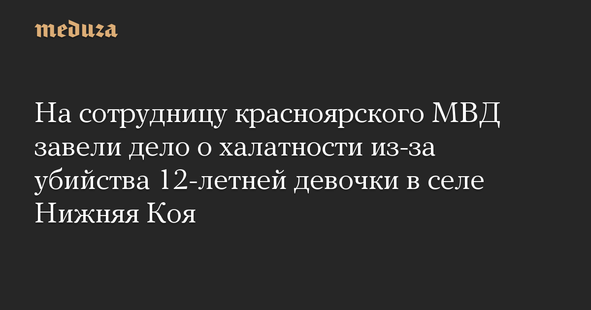 На сотрудницу красноярского МВД завели дело о халатности из-за убийства 12-летней девочки в селе Нижняя Коя
