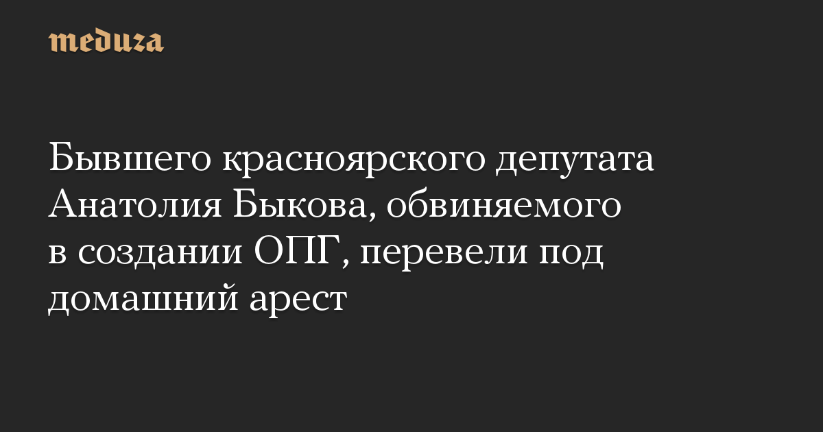 Бывшего депутата заксобрания Красноярского края Анатолия Быкова, обвиняемого в организации убийств, перевели из СИЗО под домашний арест. Об этом «Интерфаксу» сообщили в пресс-службе Красноярского краевого суда.