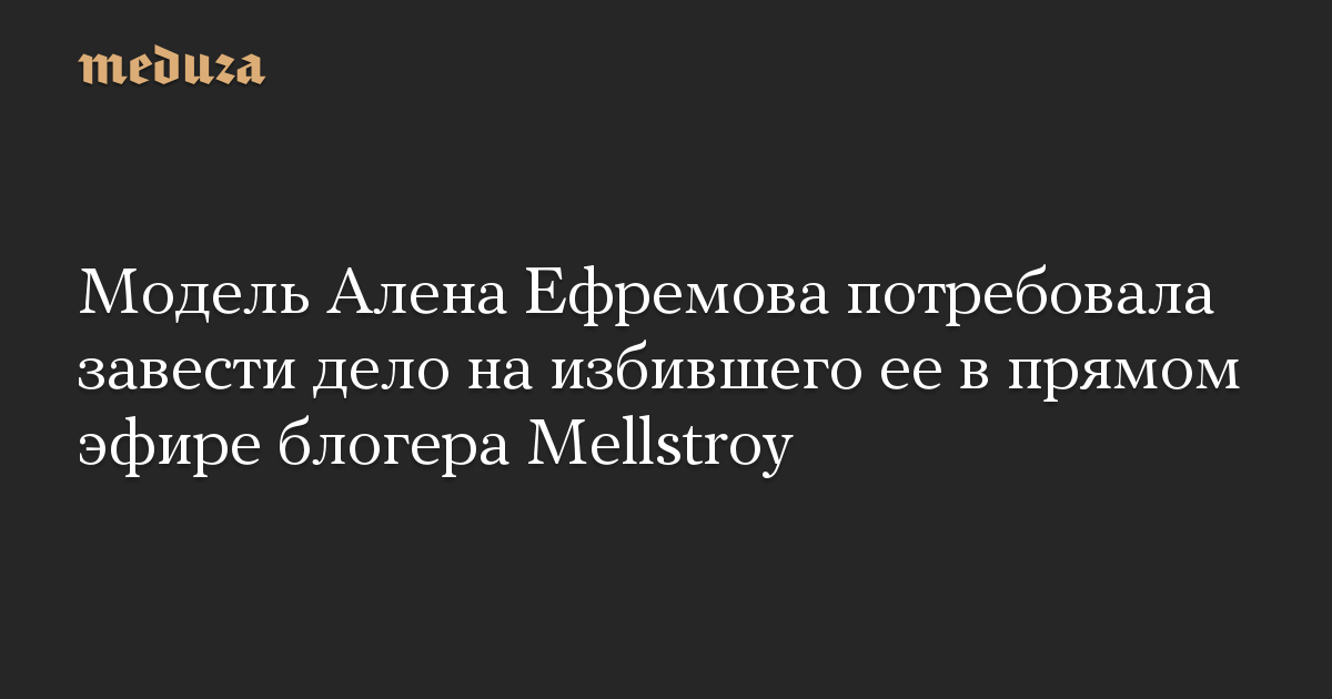 Модель Алена Ефремова потребовала завести дело на избившего ее в прямом эфире блогера Mellstroy