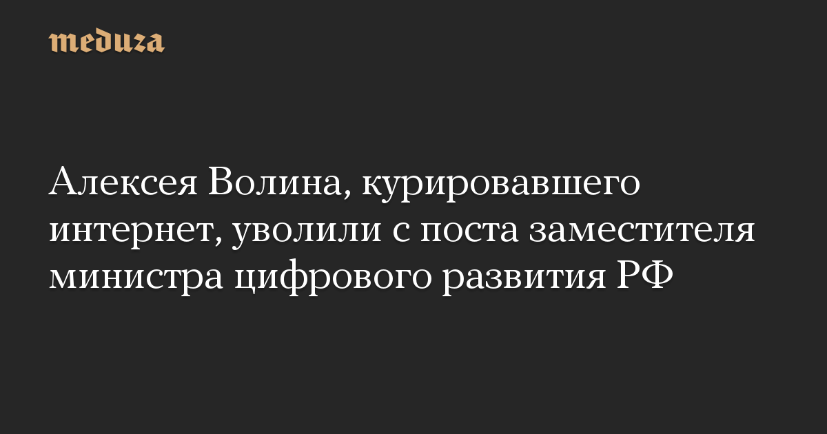 Алексея Волина, курировавшего интернет, уволили с поста заместителя министра цифрового развития РФ
