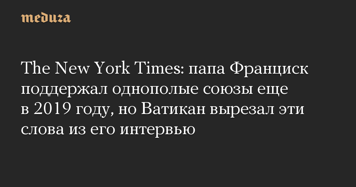 The New York Times: папа Франциск поддержал однополые союзы еще в 2019 году, но Ватикан вырезал эти слова из его интервью