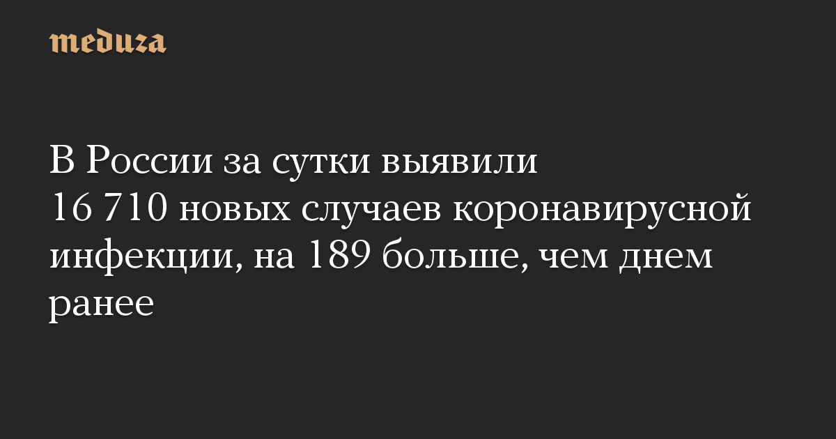 В России за сутки выявили 16 710 новых случаев коронавирусной инфекции, на 189 больше, чем днем ранее