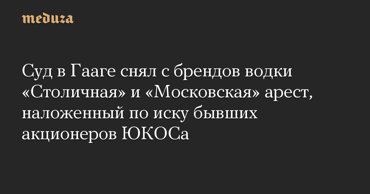 Суд в Гааге снял с брендов водки «Столичная» и «Московская» арест, наложенный по иску бывших акционеров ЮКОСа