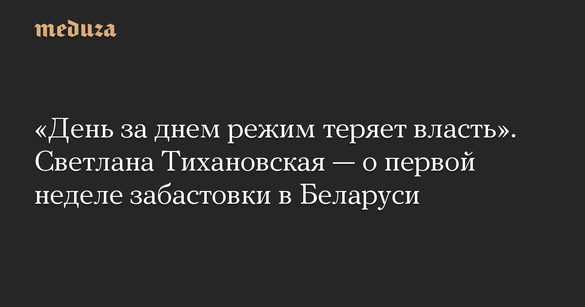 «День за днем режим теряет власть». Светлана Тихановская — о первой неделе забастовки в Беларуси