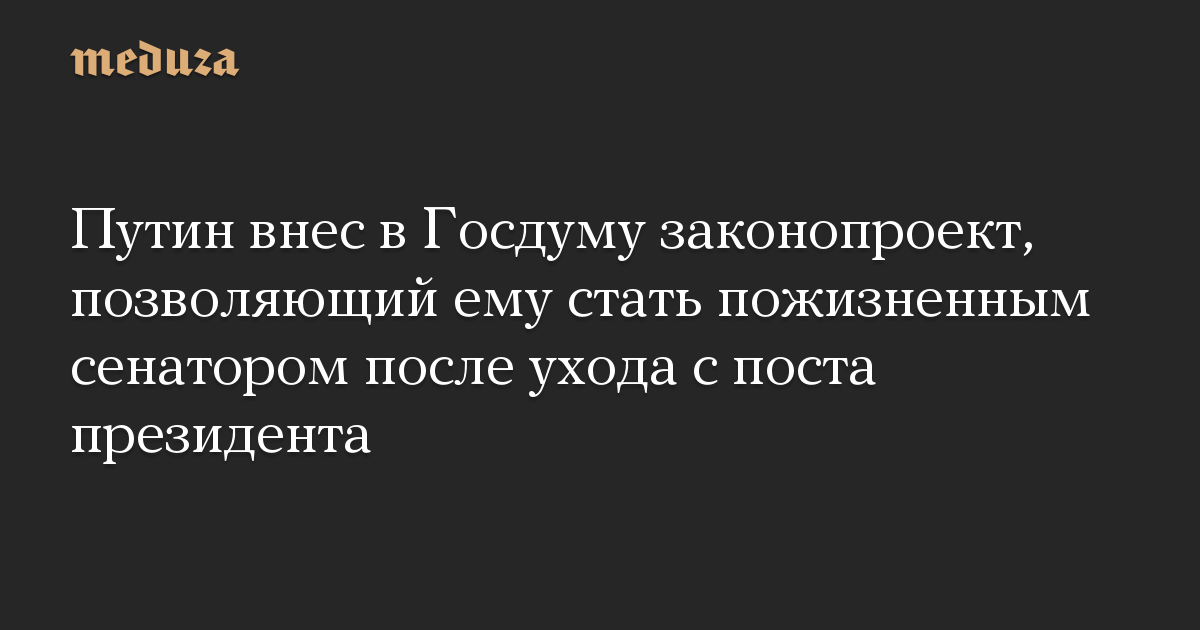 Путин внес в Госдуму законопроект, позволяющий ему стать пожизненным сенатором после ухода с поста президента