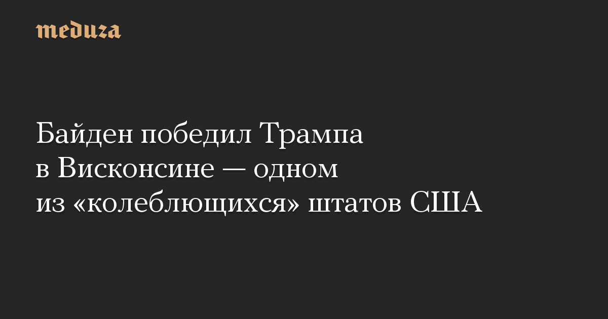 Кандидат в президенты США от Демократической партии Джо Байден выиграл выборы в «колеблющемся» штате Висконсин, сообщает Associated Press.