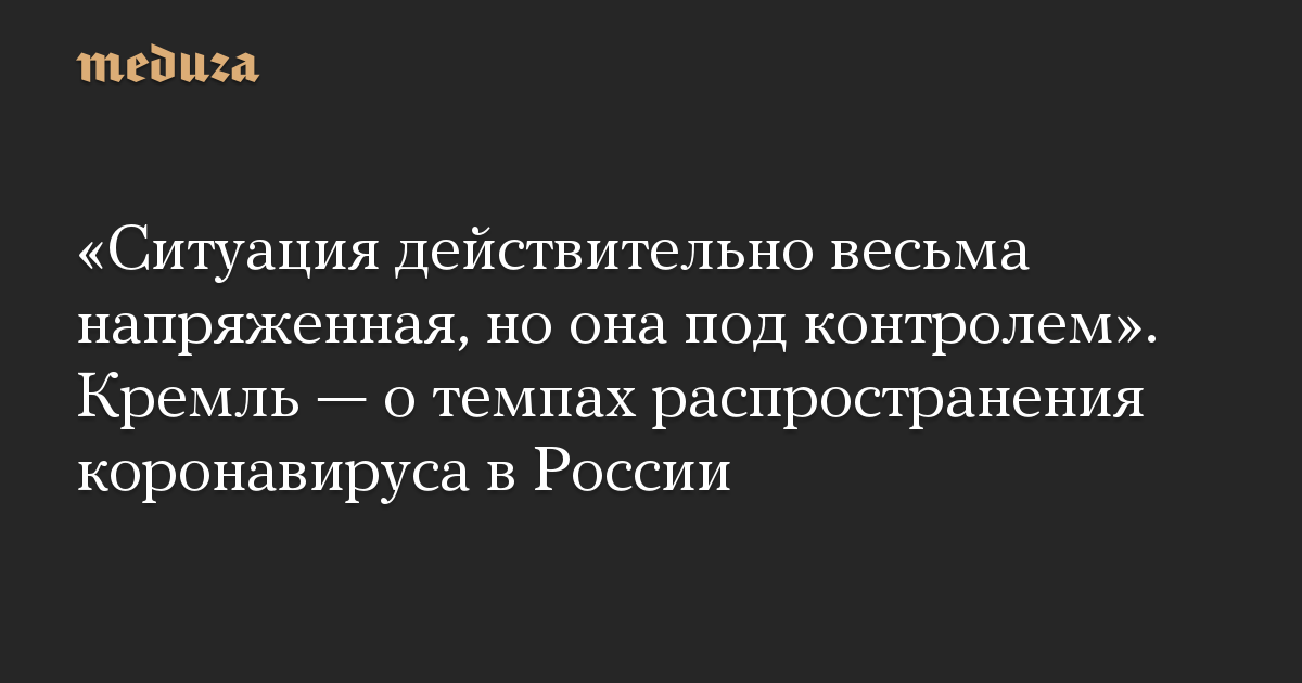 «Ситуация действительно весьма напряженная, но она под контролем». Кремль — о темпах распространения коронавируса в России