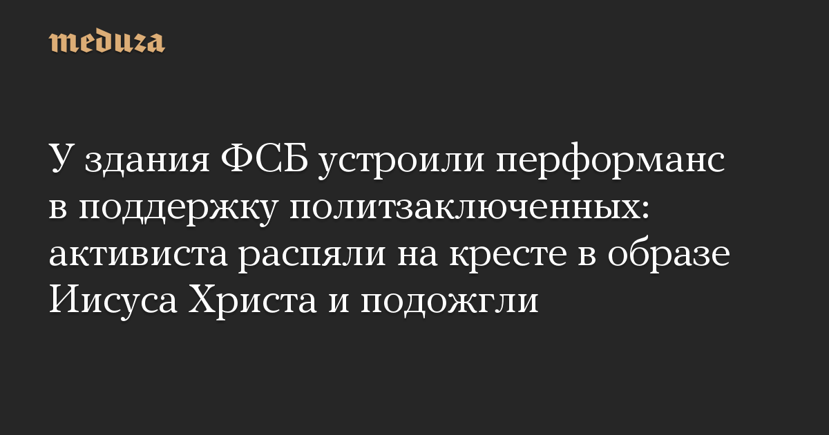 У здания ФСБ устроили перформанс в поддержку политзаключенных: активиста распяли на кресте в образе Иисуса Христа и подожгли