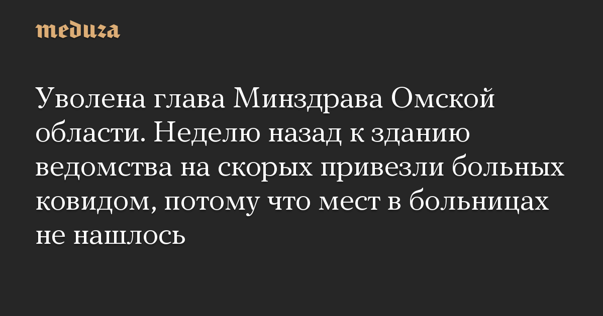 Уволена глава Минздрава Омской области. Неделю назад к зданию ведомства на скорых привезли больных ковидом, потому что мест в больницах не нашлось
