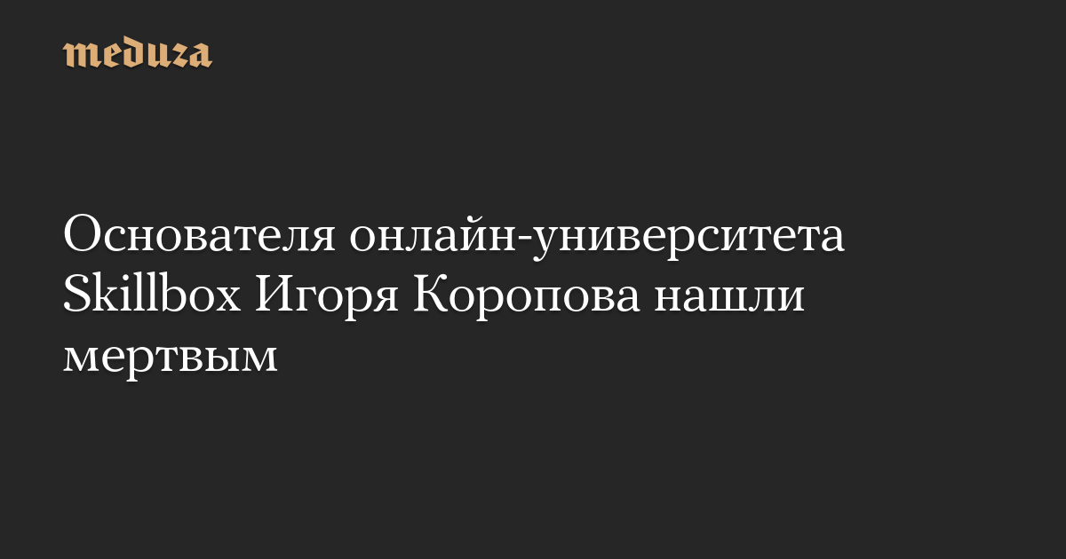 Основателя онлайн-университета Skillbox Игоря Коропова нашли мертвым