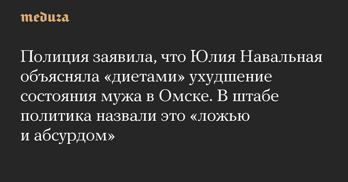 Полиция заявила, что Юлия Навальная объясняла «диетами» ухудшение состояния мужа в Омске. В штабе политика назвали это «ложью и абсурдом»
