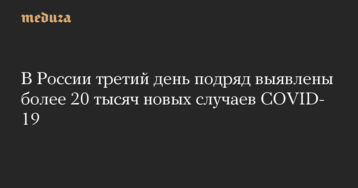 В России третий день подряд выявлены более 20 тысяч новых случаев COVID-19
