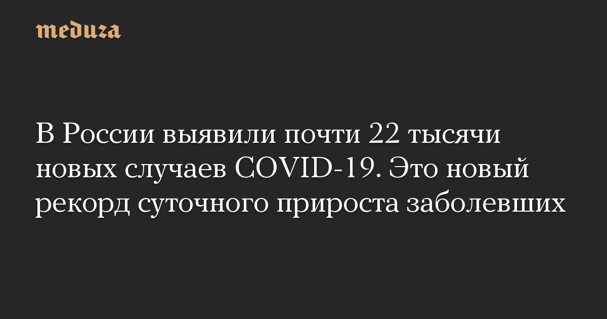 В России выявили почти 22 тысячи новых случаев COVID-19. Это новый рекорд суточного прироста заболевших