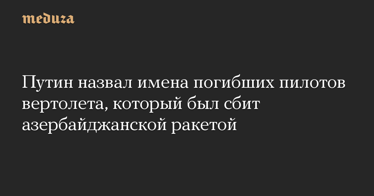 Путин назвал имена погибших пилотов вертолета, который был сбит азербайджанской ракетой