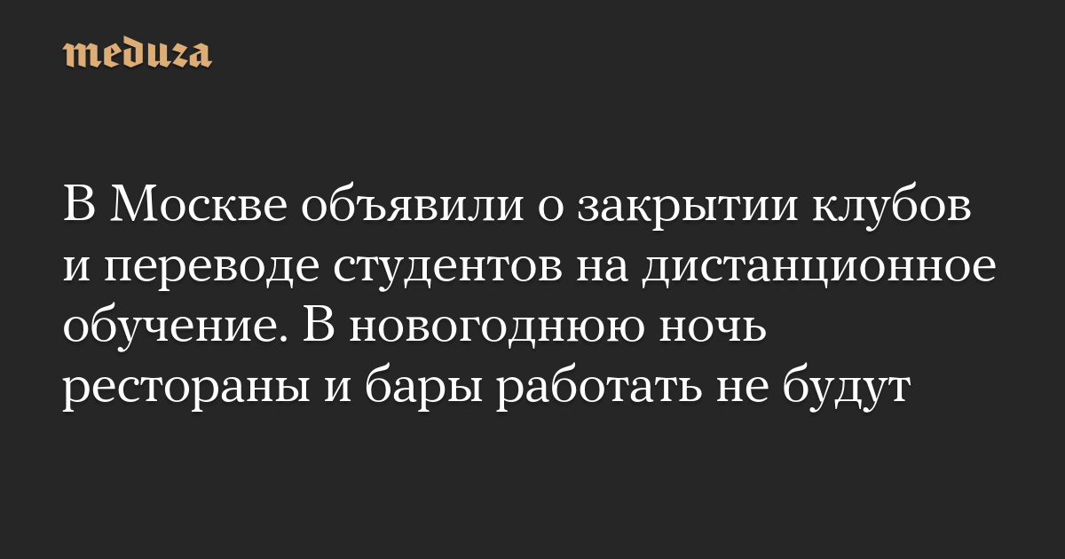 В Москве объявили о закрытии клубов и переводе студентов на дистанционное обучение. В новогоднюю ночь рестораны и бары работать не будут