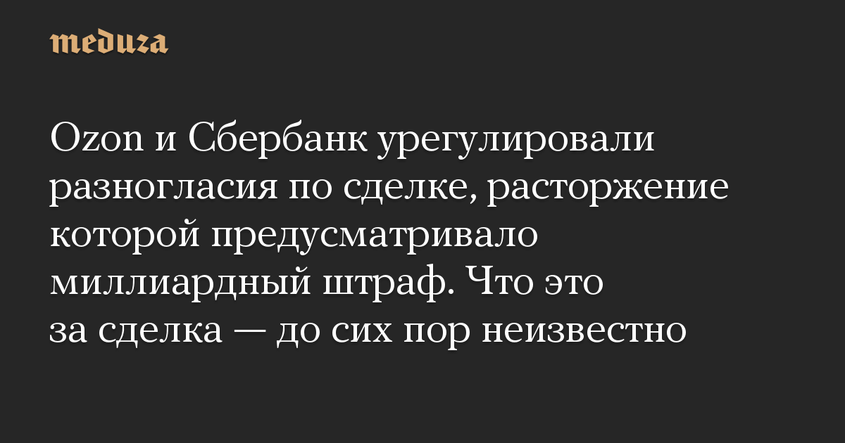 Ozon и Сбербанк урегулировали разногласия по сделке, расторжение которой предусматривало миллиардный штраф. Что это за сделка — до сих пор неизвестно
