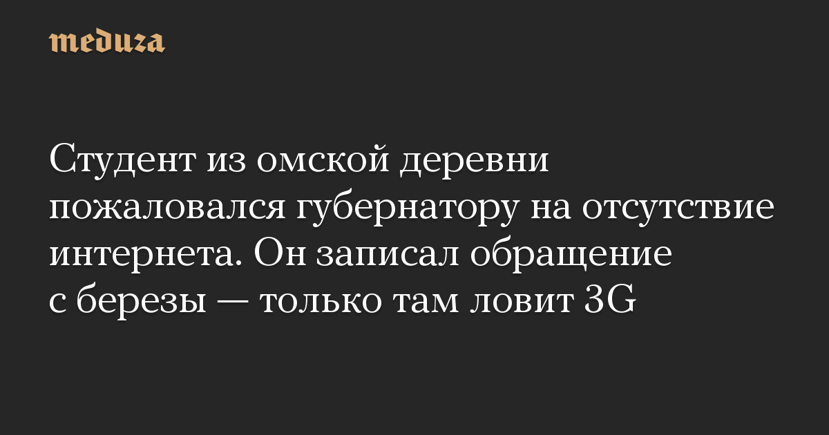 Студент из омской деревни пожаловался губернатору на отсутствие интернета. Он записал обращение с березы — только там ловит 3G