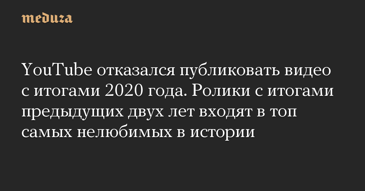 YouTube отказался публиковать видео с итогами 2020 года. Ролики с итогами предыдущих двух лет входят в топ самых нелюбимых в истории