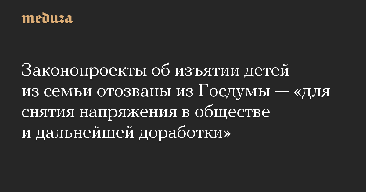 Законопроекты об изъятии детей из семьи отозваны из Госдумы — «для снятия напряжения в обществе и дальнейшей доработки»