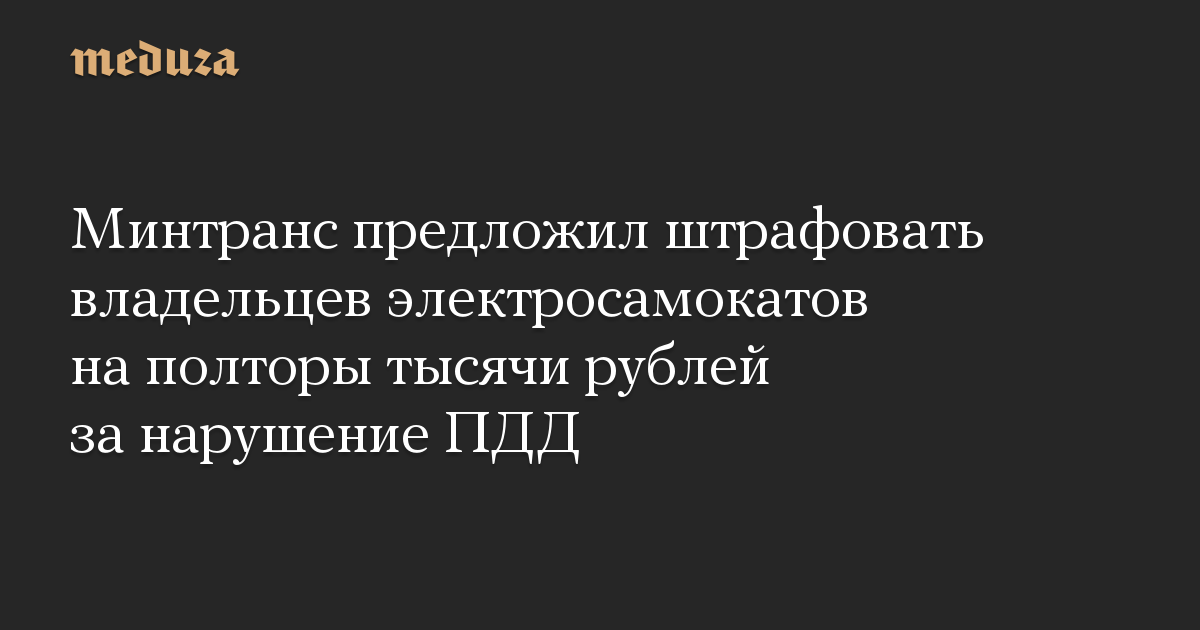 Минтранс предложил штрафовать владельцев электросамокатов на полторы тысячи рублей за нарушение ПДД