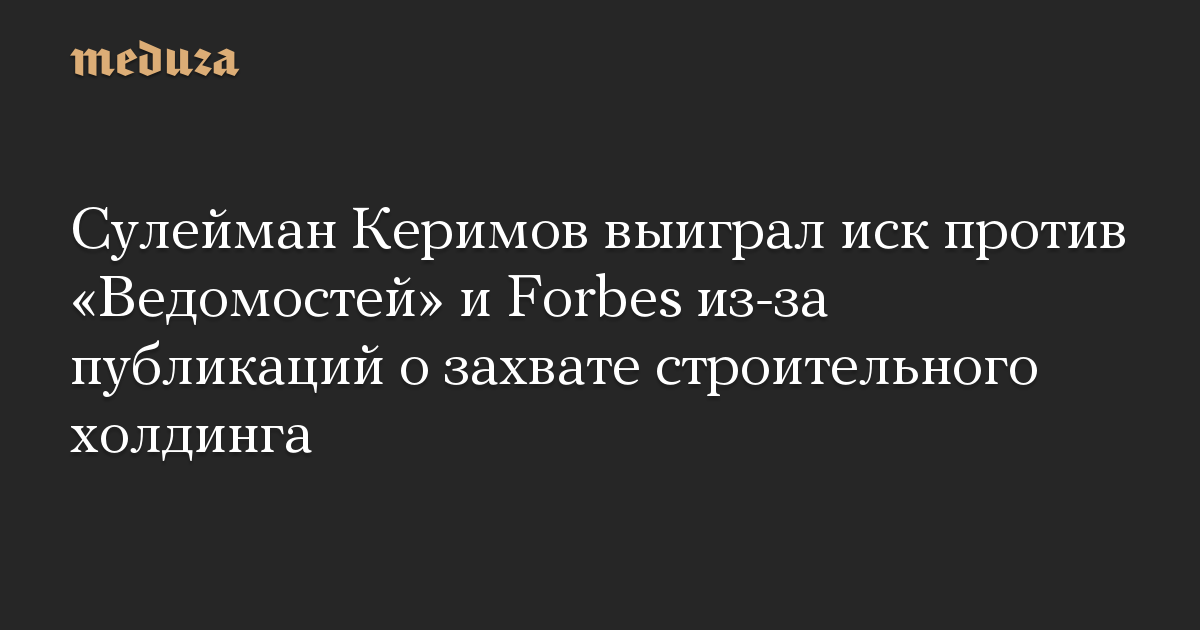 Басманный суд Москвы частично удовлетворил иск бизнесмена и сенатора Сулеймана Керимова, поданный к «Ведомостям», Forbes, «Собеседнику» и пользовательнице фейсбука, пересказавшей материалы этих изданий о предпринимателе. Об этом «Медузе» сообщили в пресс-службе суда.