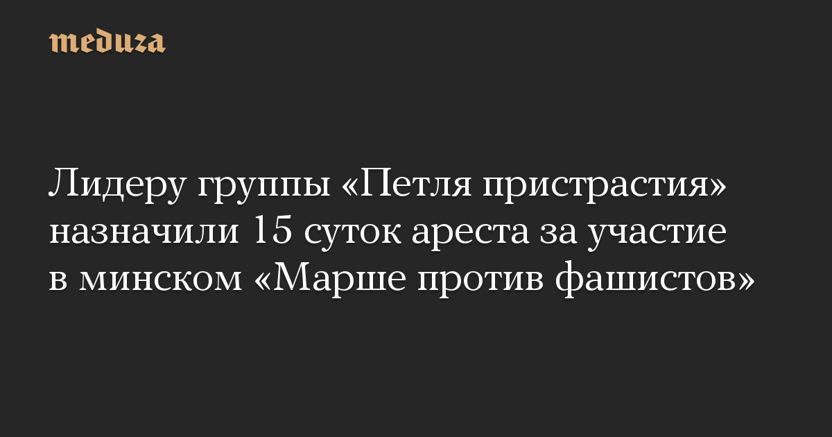 Лидеру группы «Петля пристрастия» назначили 15 суток ареста за участие в минском «Марше против фашистов»