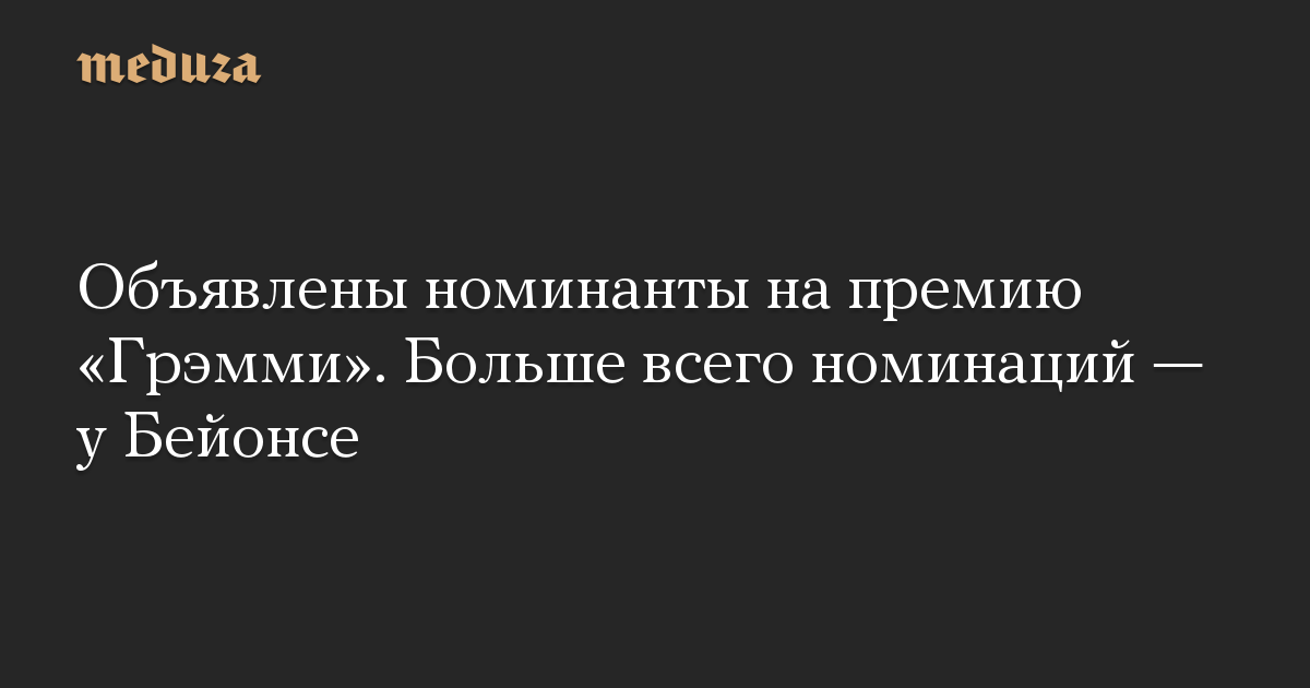 Объявлены номинанты на премию «Грэмми». Больше всего номинаций — у Бейонсе