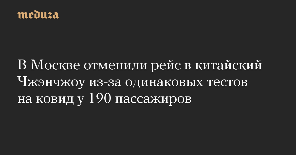 В Москве отменили рейс в китайский Чжэнчжоу из-за одинаковых тестов на ковид у 190 пассажиров