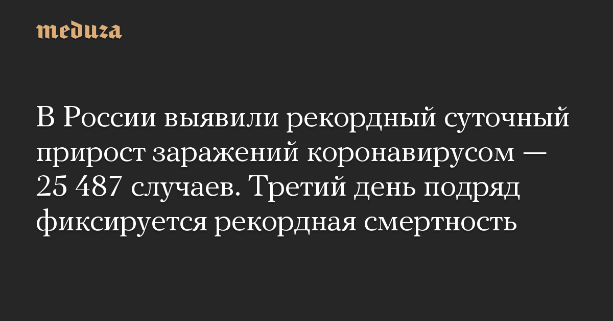 В России выявили рекордный суточный прирост заражений коронавирусом — 25 487 случаев. Третий день подряд фиксируется рекордная смертность