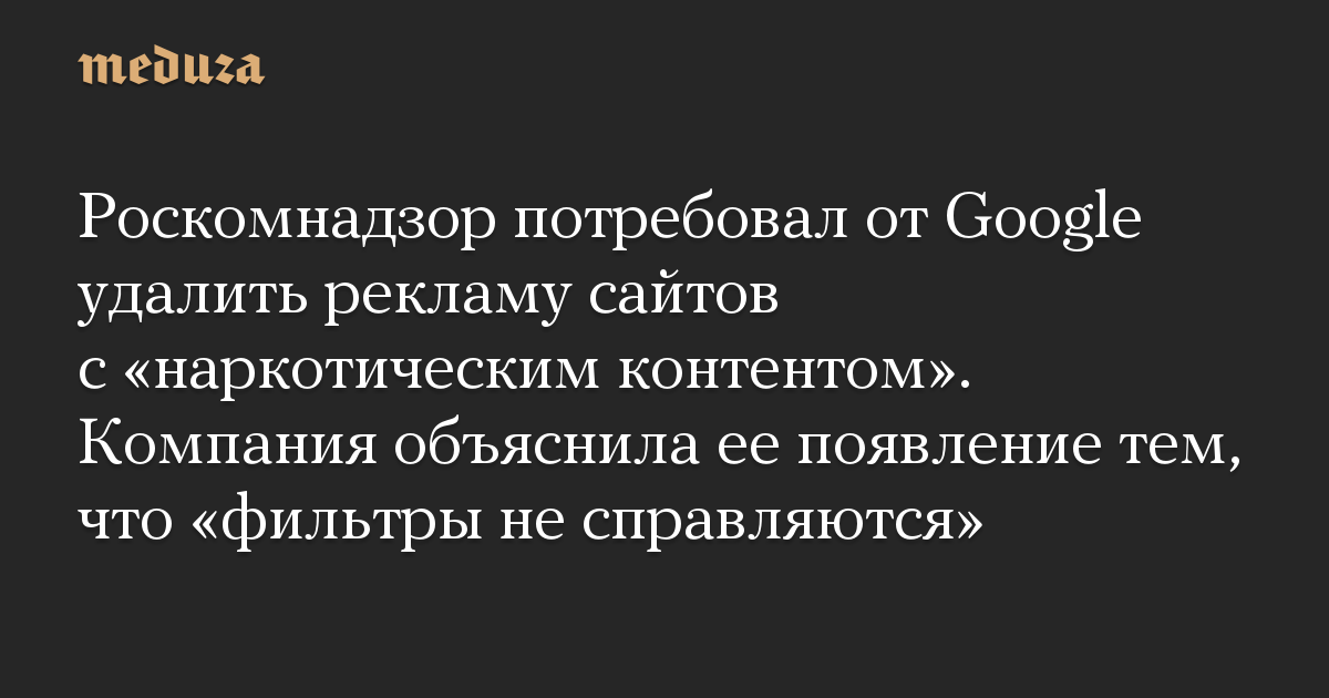 Роскомнадзор потребовал от Google удалить рекламу сайтов с «наркотическим контентом». Компания объяснила ее появление тем, что «фильтры не справляются»