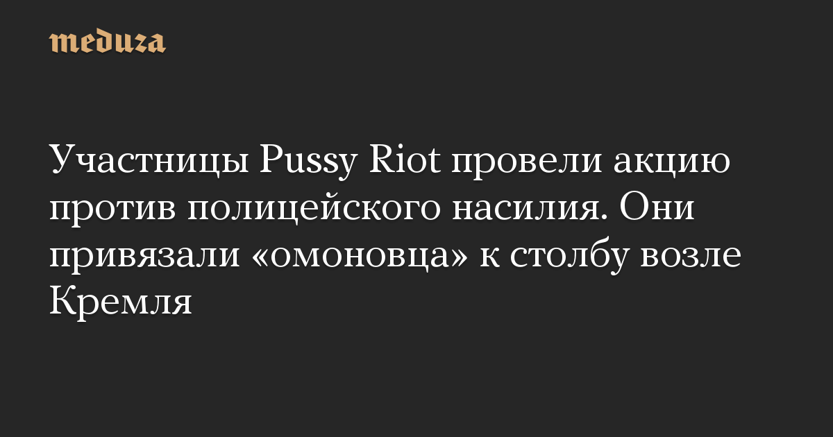 Участницы Pussy Riot провели акцию против полицейского насилия. Они привязали «омоновца» к столбу возле Кремля