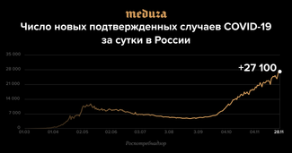 В России второй день подряд фиксируют больше 27 тысяч новых случаев ковида. Число умерших с начала пандемии превысило 39 тысяч человек