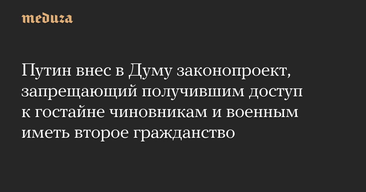 Президент России Владимир Путин внес в Госдуму законопроект о запрете на иностранное гражданство для военных и чиновников, у которых есть доступ к государственной тайне.