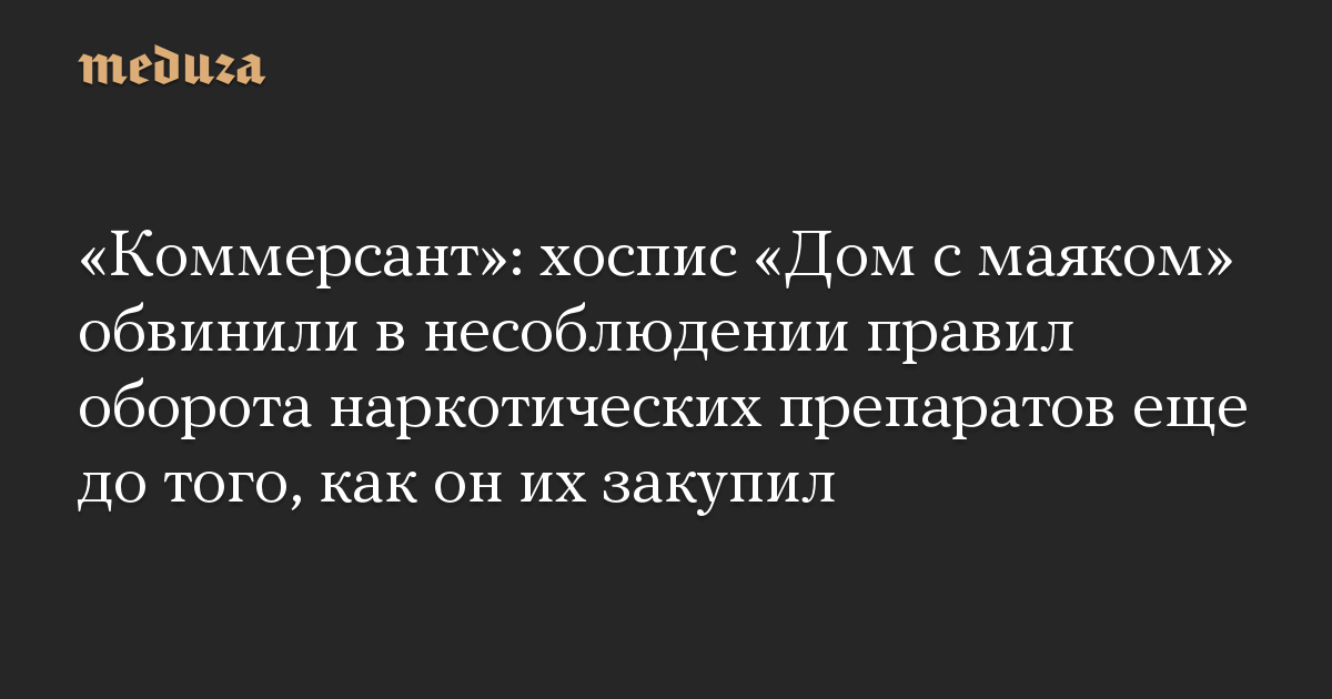 «Коммерсант»: хоспис «Дом с маяком» обвинили в несоблюдении правил оборота наркотических препаратов еще до того, как он их закупил