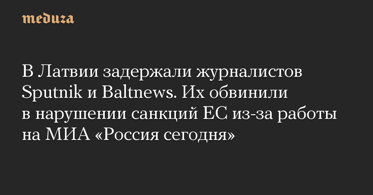 В Латвии задержали журналистов Sputnik и Baltnews. Их обвинили в нарушении санкций ЕС из-за работы на МИА «Россия сегодня»