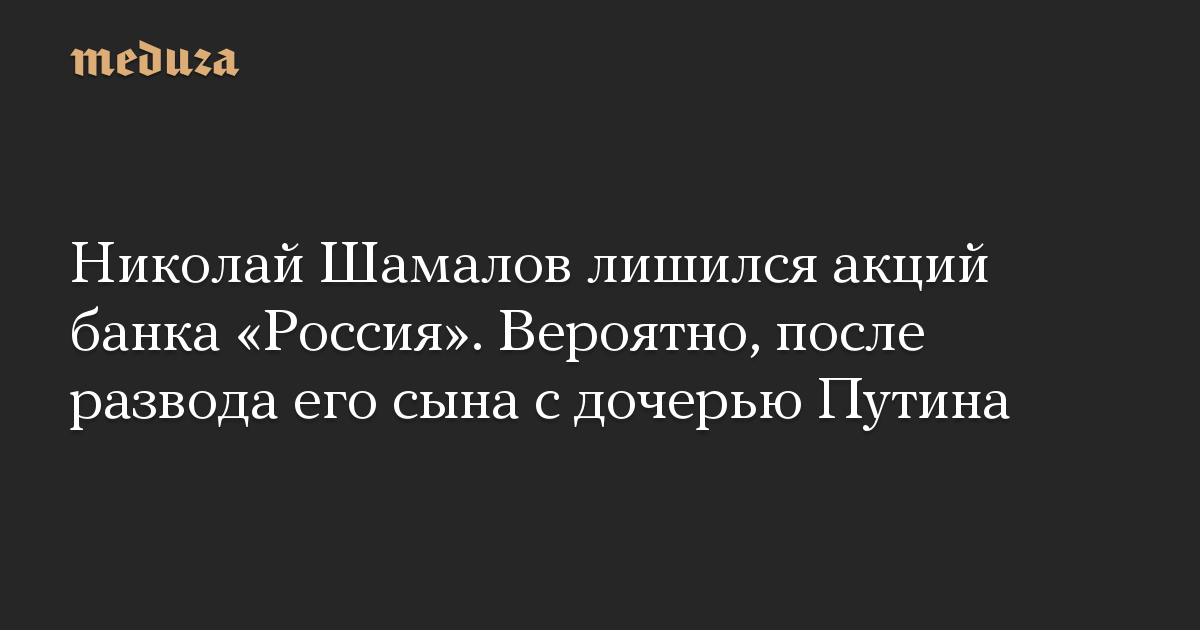 Издания считают, что Николай Шамалов расстался с акциями «России» после того, как в 2017 году его сын Кирилл Шамалов развелся с предполагаемой дочерью Владимира Путина Катериной Тихоновой.