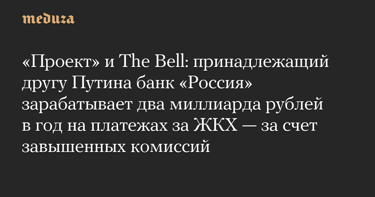 «Проект» и The Bell: принадлежащий другу Путина банк «Россия» зарабатывает два миллиарда рублей в год на платежах за ЖКХ — за счет завышенных комиссий