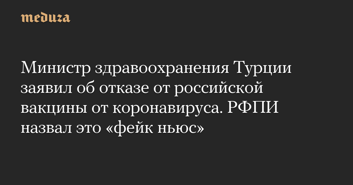 Министр здравоохранения Турции заявил об отказе от российской вакцины от коронавируса. РФПИ назвал это «фейк ньюс»