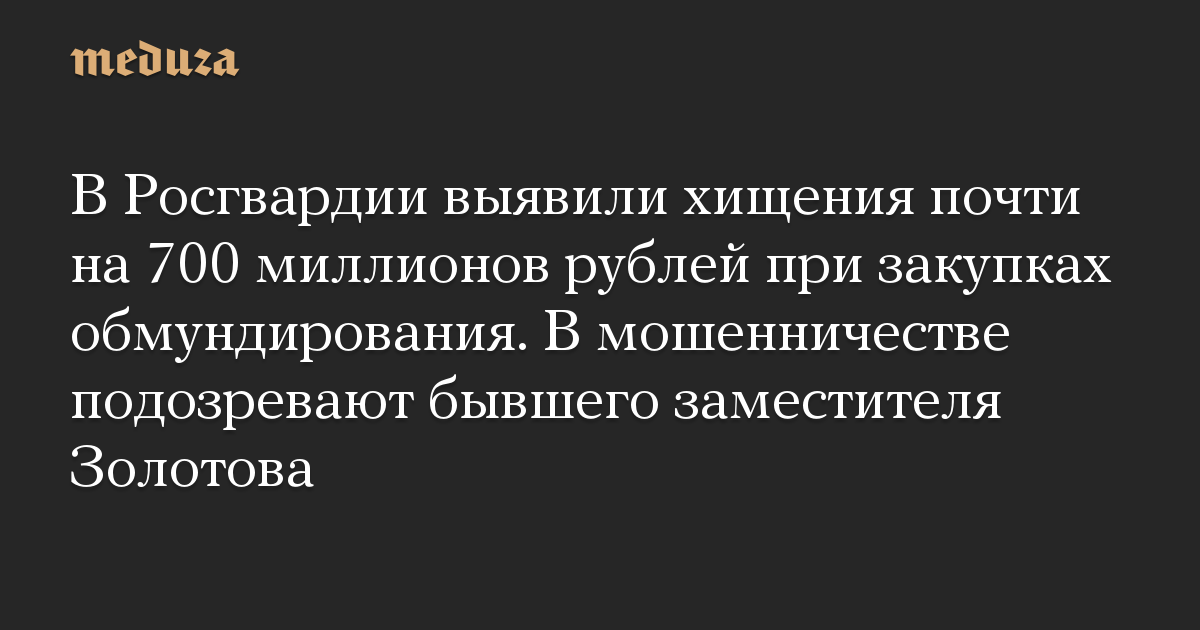 В Росгвардии выявили хищения почти на 700 миллионов рублей при закупках обмундирования. В мошенничестве подозревают бывшего заместителя Золотова