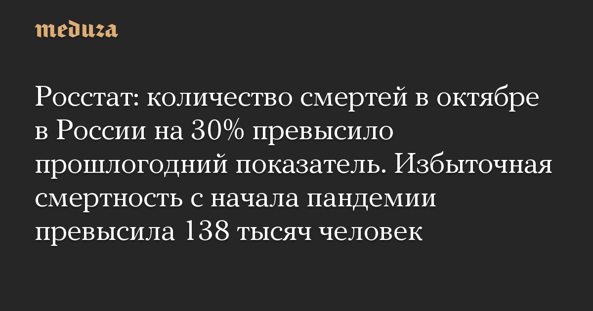 Росстат: количество смертей в октябре в России на 30% превысило прошлогодний показатель. Избыточная смертность с начала пандемии превысила 138 тысяч человек
