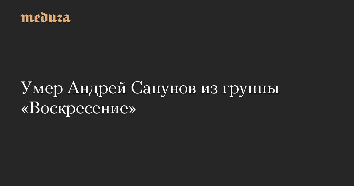 Музыкант Андрей Сапунов, участник группы «Воскресение», умер в возрасте 64 лет. Смерть Сапунова подтвердила РБК пресс-атташе коллектива Нонна Абрамова. По предварительным данным, сообщила она, причиной смерти стал инфаркт.