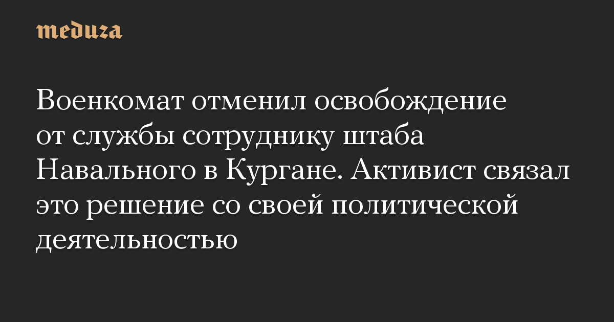 Военкомат отменил освобождение от службы сотруднику штаба Навального в Кургане. Активист связал это решение со своей политической деятельностью