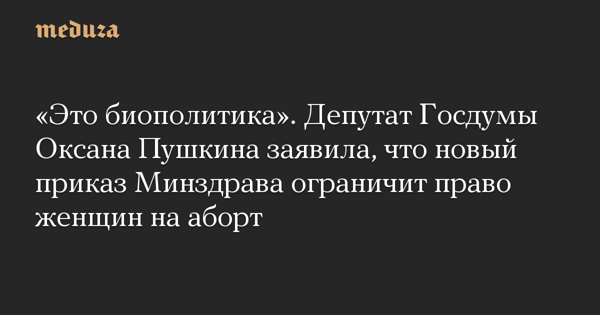 «Это биополитика». Депутат Госдумы Оксана Пушкина заявила, что новый приказ Минздрава ограничит право женщин на аборт
