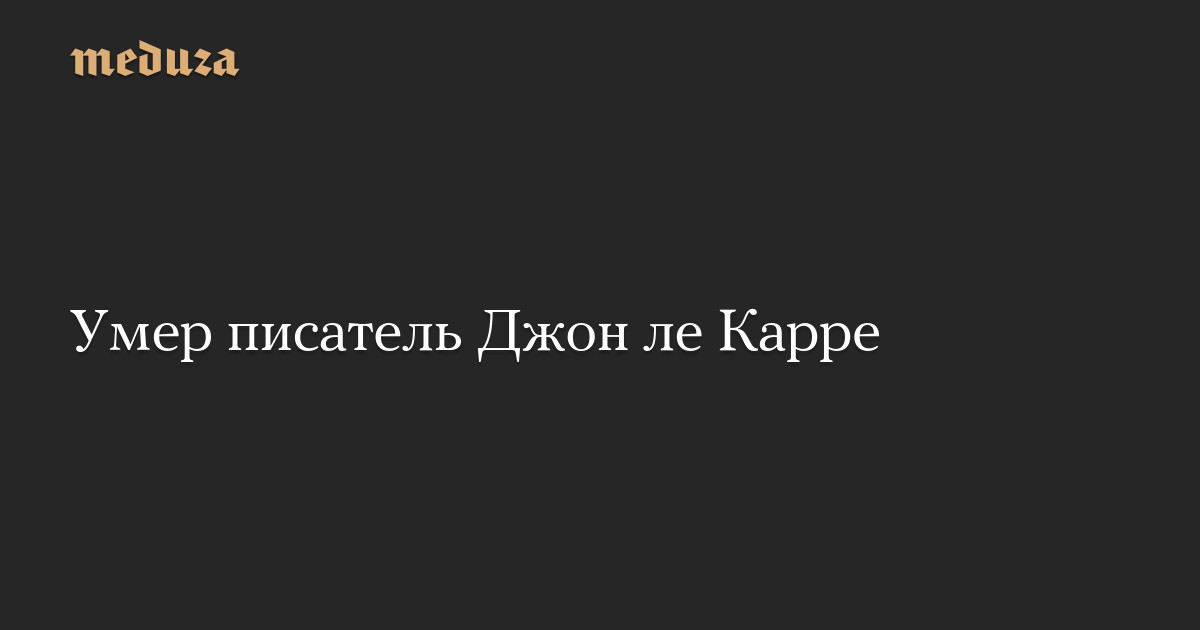 Британский писатель Джон ле Карре (настоящее имя — Дэвид Корнуэлл) умер на 90-м году жизни, сообщает литературное агентство Curtis Brown.