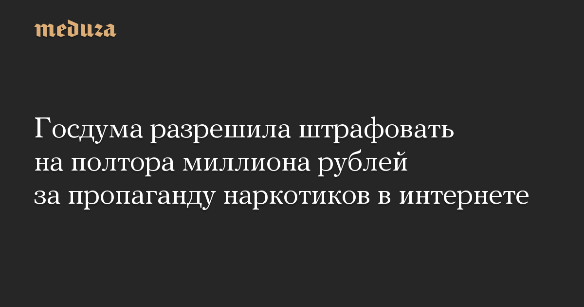 Госдума разрешила штрафовать на полтора миллиона рублей за пропаганду наркотиков в интернете
