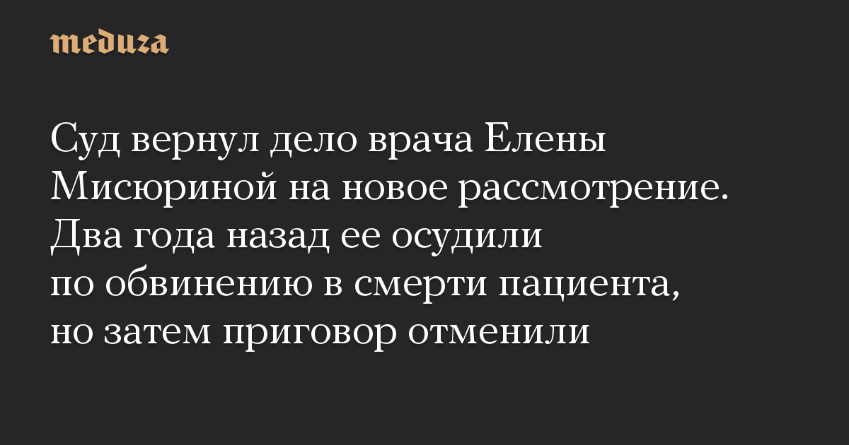 Суд вернул дело врача Елены Мисюриной на новое рассмотрение. Два года назад ее осудили по обвинению в смерти пациента, но затем приговор отменили